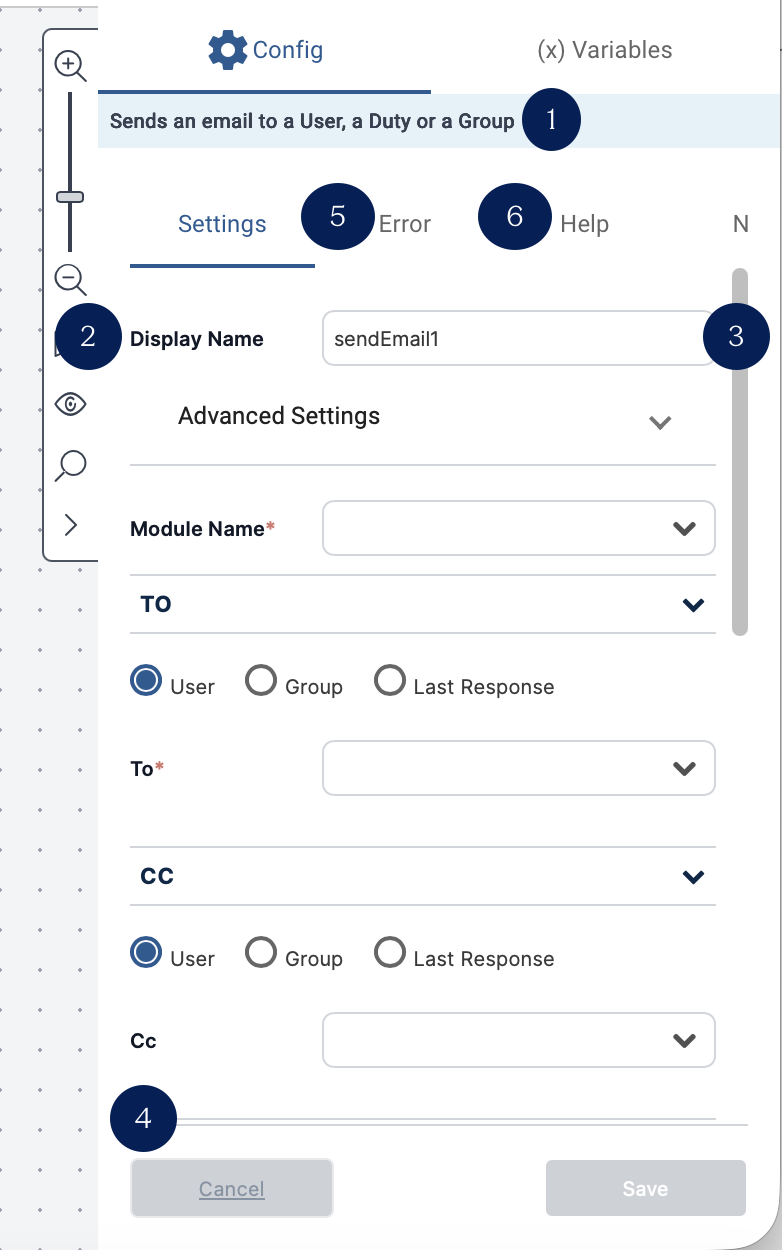 - Error—Allows you to select error handling directions. For more information, refer to Defining Error Handling.